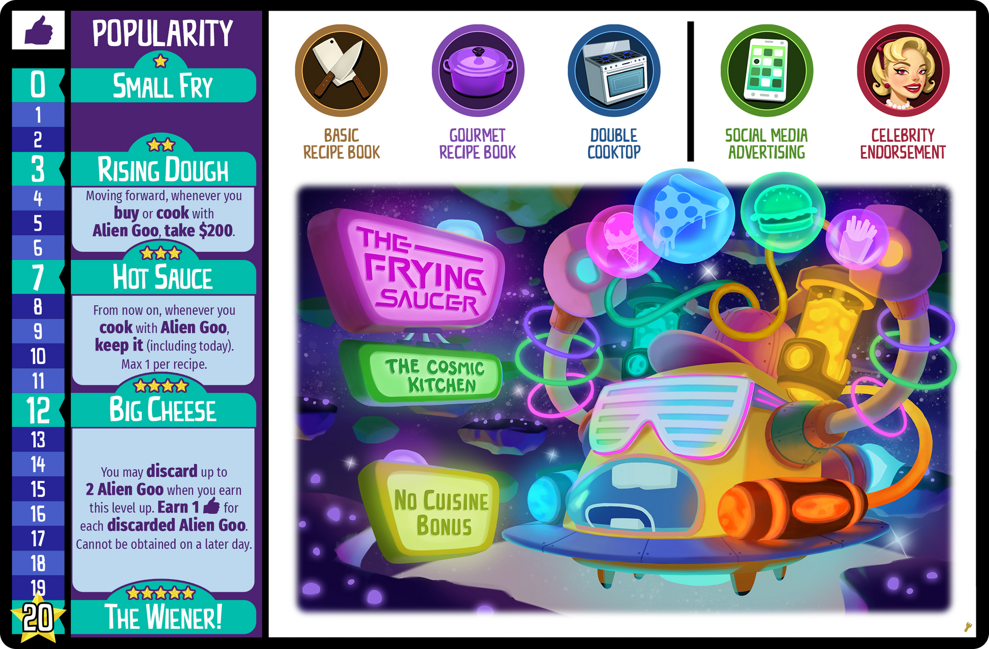 The Frying Saucer Mini Expansion is the first of it's kind standalone Chef/Restaurant Mini Expansion and is truly out of this world! Included are the following: